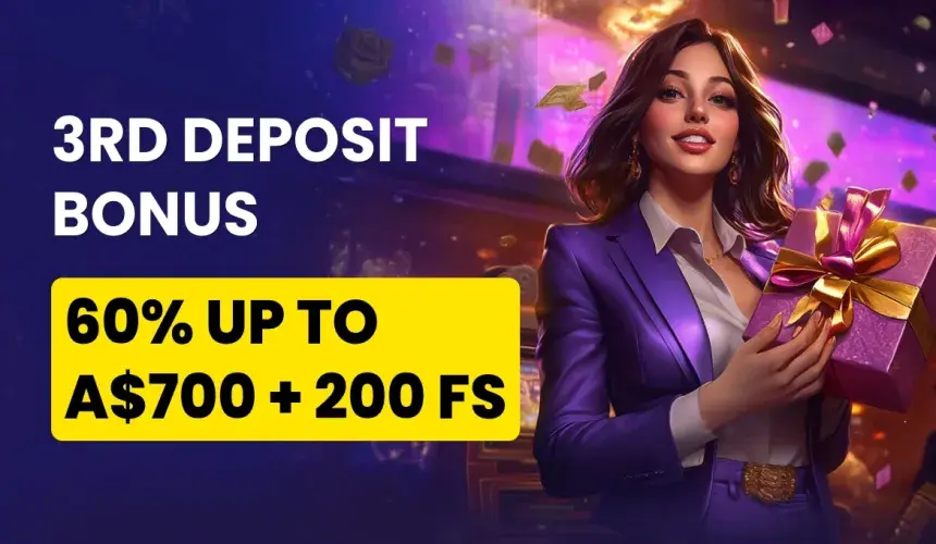 For the third treat, you can claim up to 500 AUD as your third deposit attracts a 50% match. Like the previous ones, the minimum 20 AUD only grants you 100 free whirls, as you need to deposit 100 AUD to claim the full 200. Yes, you must enter the promo code “THIRD” before your deposit, and activation is necessary within 24 hours.